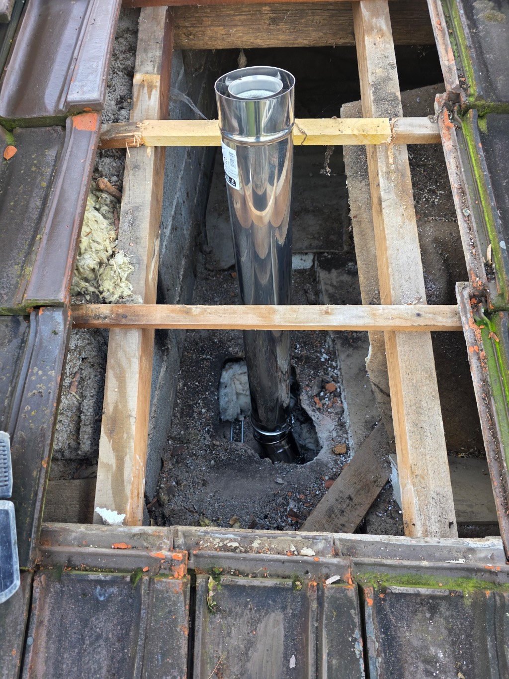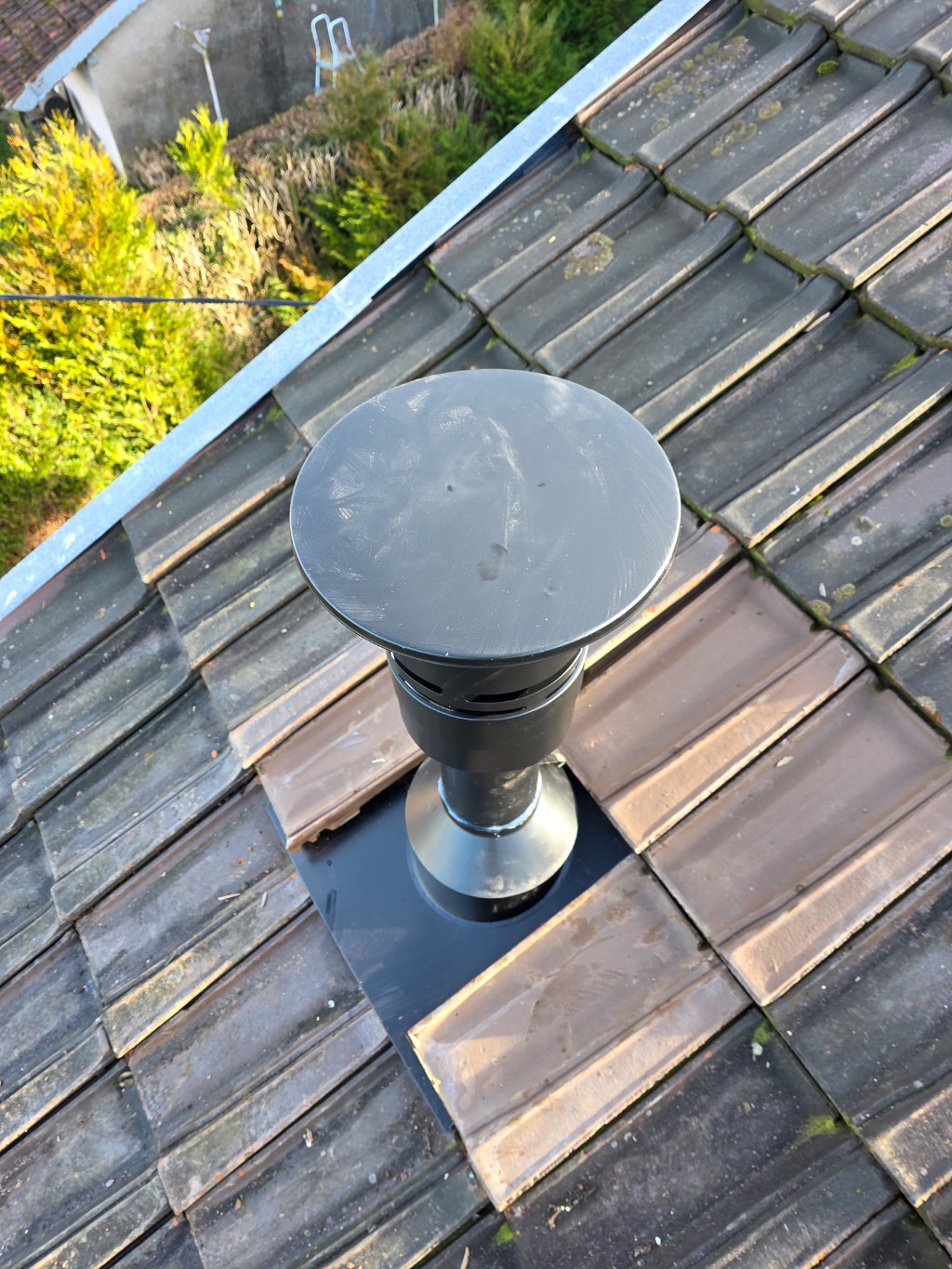 La création d'un tubage Modinox concentrique double paroi a été mis en place dans les combles avec sortie de toit, l'étanchéité a été réalisée dans les règles de l'art.