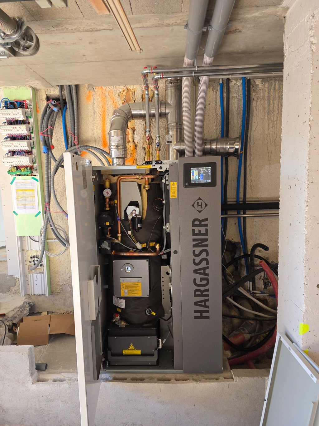 Installation d'une chaudière à granulés de bois HARGASSNER NANO PK - Entreprise RGE QualiBois-Morbier(39400) - Jura (39)